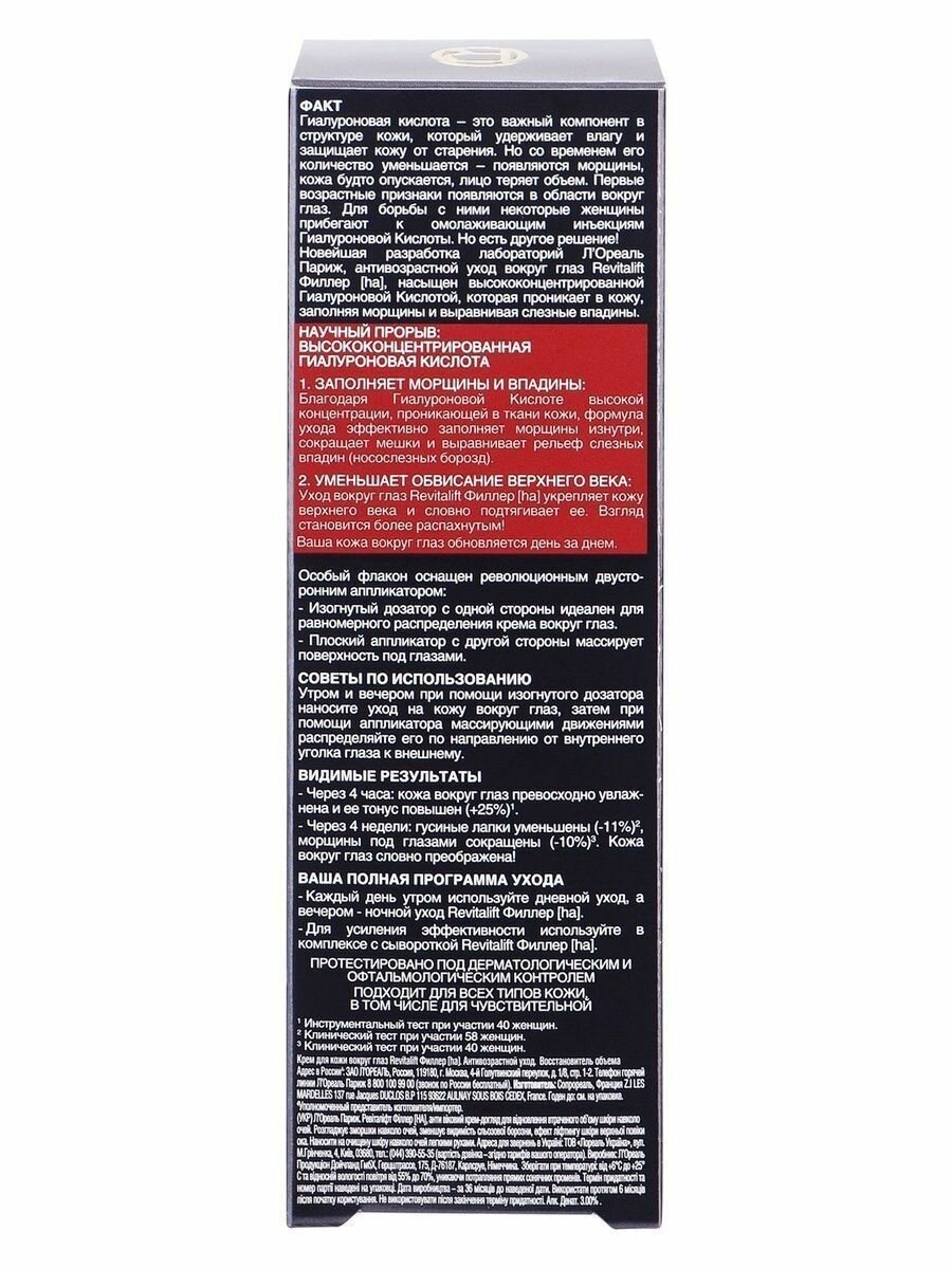 Антивозрастной крем "Ревиталифт Филлер" вокруг глаз 15 мл интересное:
