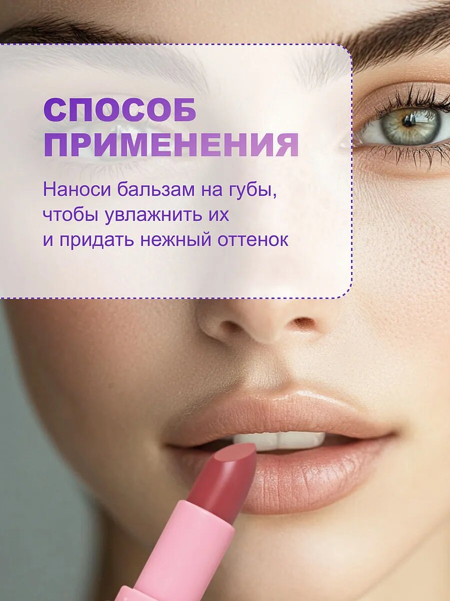 | Способ применения | Наноси бальзам на губы, чтобы увлажнить их и придать нежный оттенок. |