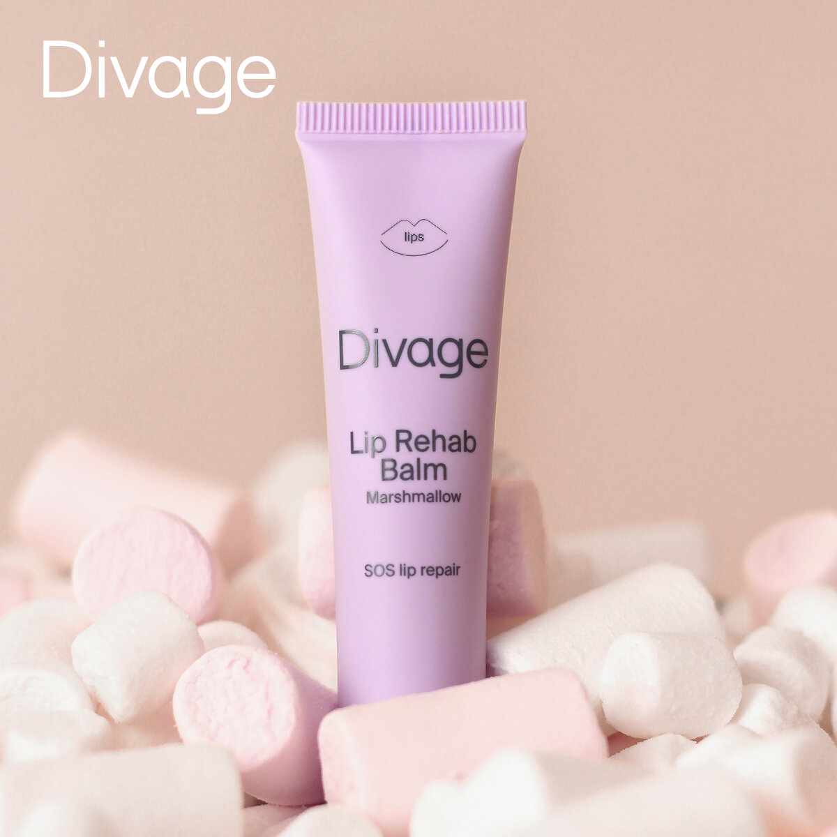 DIVAGE Бальзам для губ с ароматом маршмеллоу Lip Rehab Balm SOS lip repair Marshmallow, 12 мл