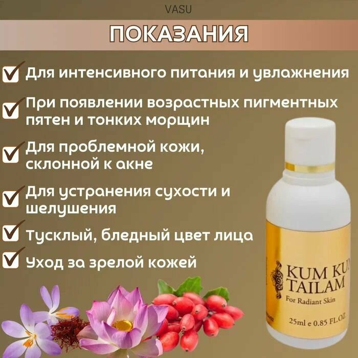 Vasu KUM KUMADI Tailam Oil Кумкумади омолаживающее масло для лица / Васу / 50 мл