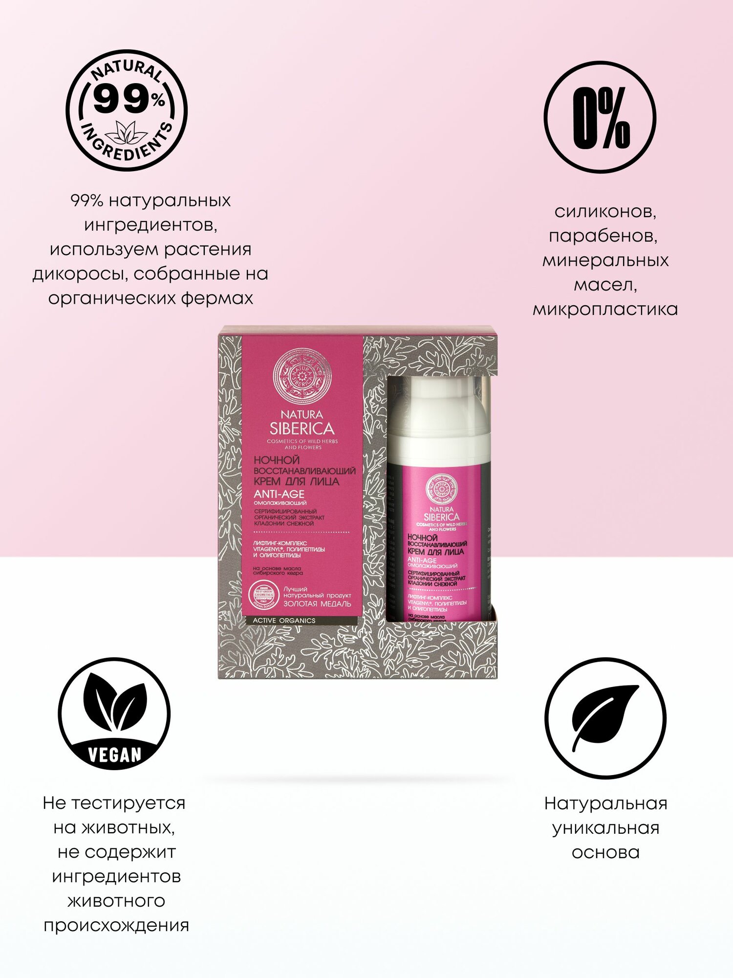 Natura Siberica Anti-Age Ночной крем для лица от морщин восстанавливающий омолаживающий антивозрастной лифтинг с ретинолом и пептидами 50 мл интересное: