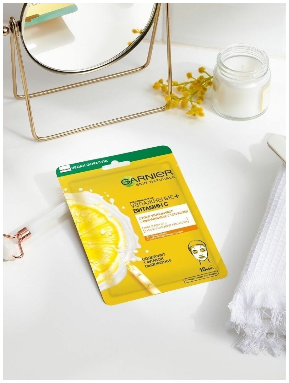 GARNIER тканевая маска Увлажнение + Витамин C, 28 г, 28 мл интересное: