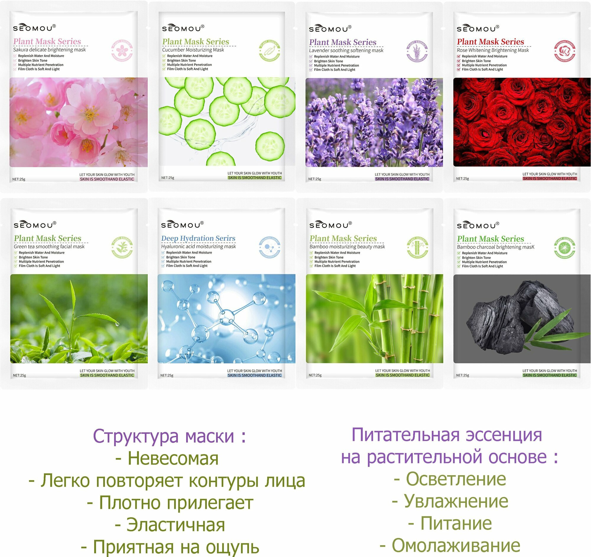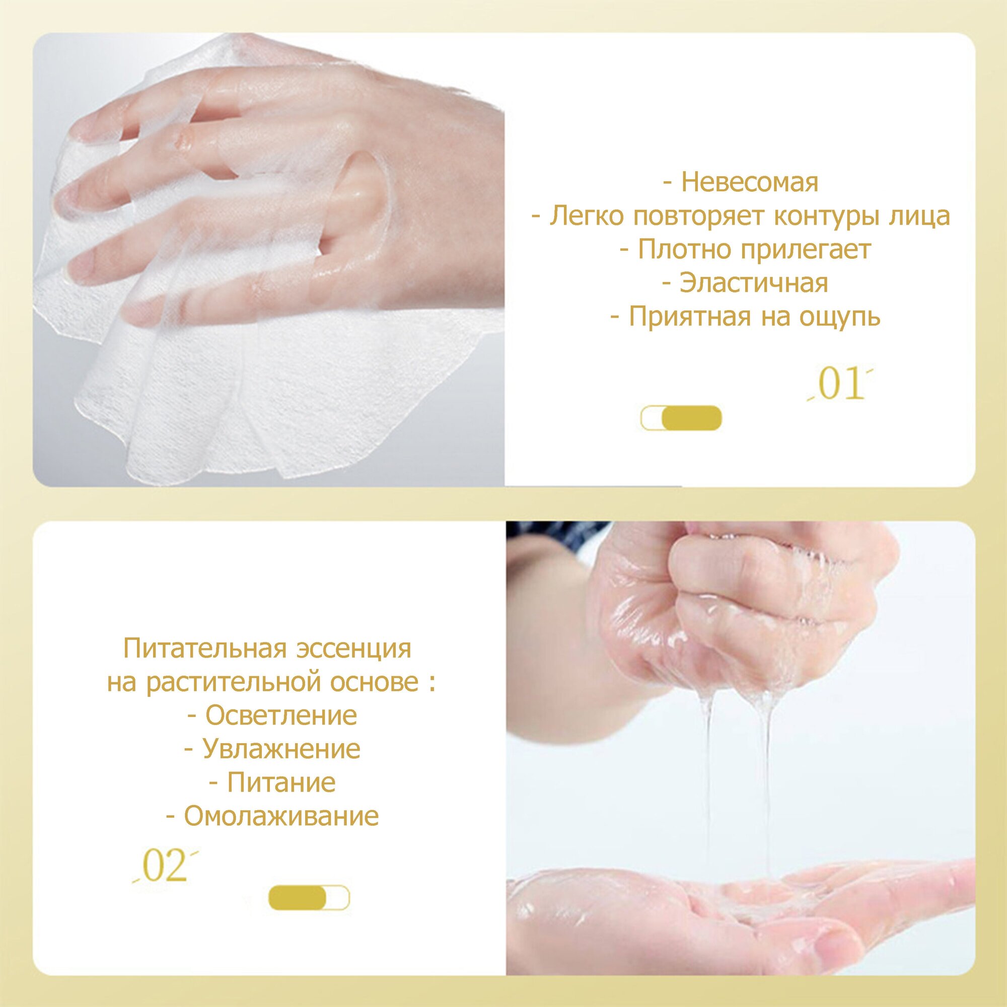 | Вид маски | биоцеллюлозная / гелевая / гидрогелевая / маска-компресс / сухая / сыворотка / тканевая |