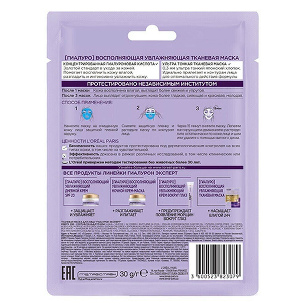 L'Oreal Paris Маска тканевая для лица Гиалурон Эксперт, 30 г , 2 шт