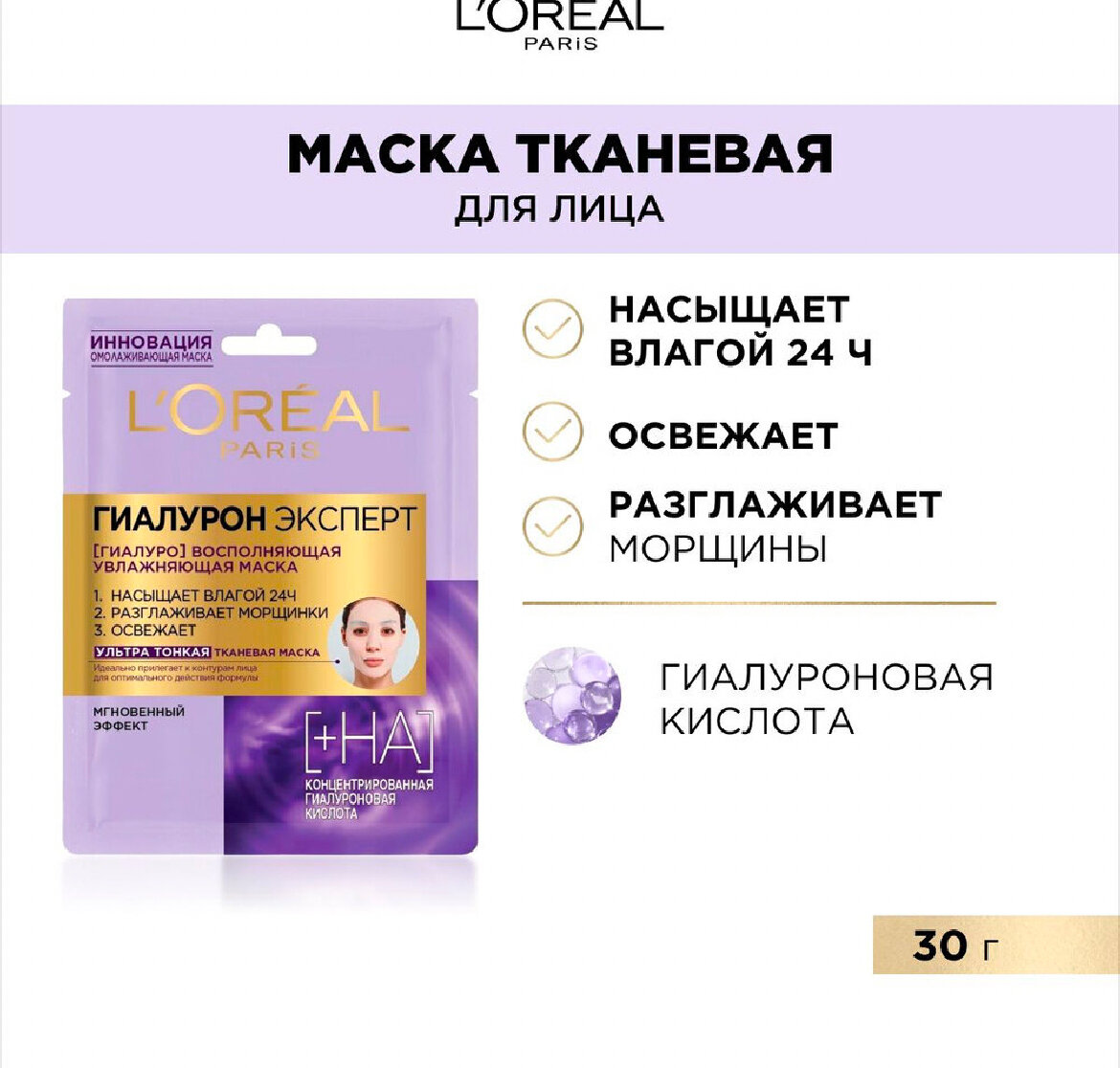 Купить L'Oreal Paris Маска тканевая для лица Гиалурон Эксперт, 30 г
