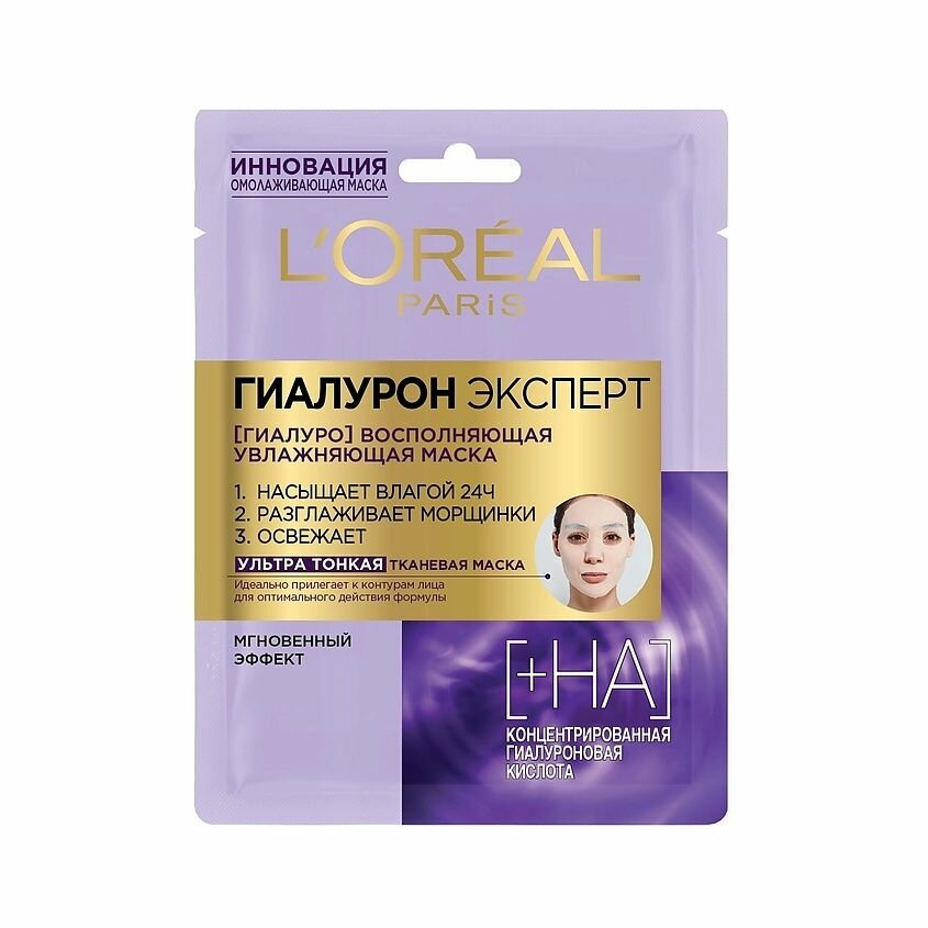 L'Oreal Paris Тканевая маска для лица Гиалурон Эксперт, увлажняющая, ультра тонкая
