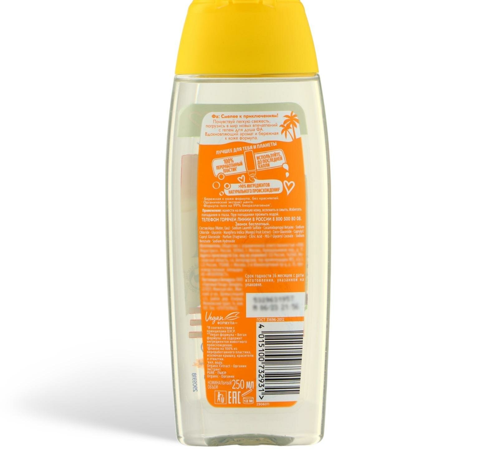 Fa Гель для душа Pure Organic, аромат манго и маракуйи, 250 мл