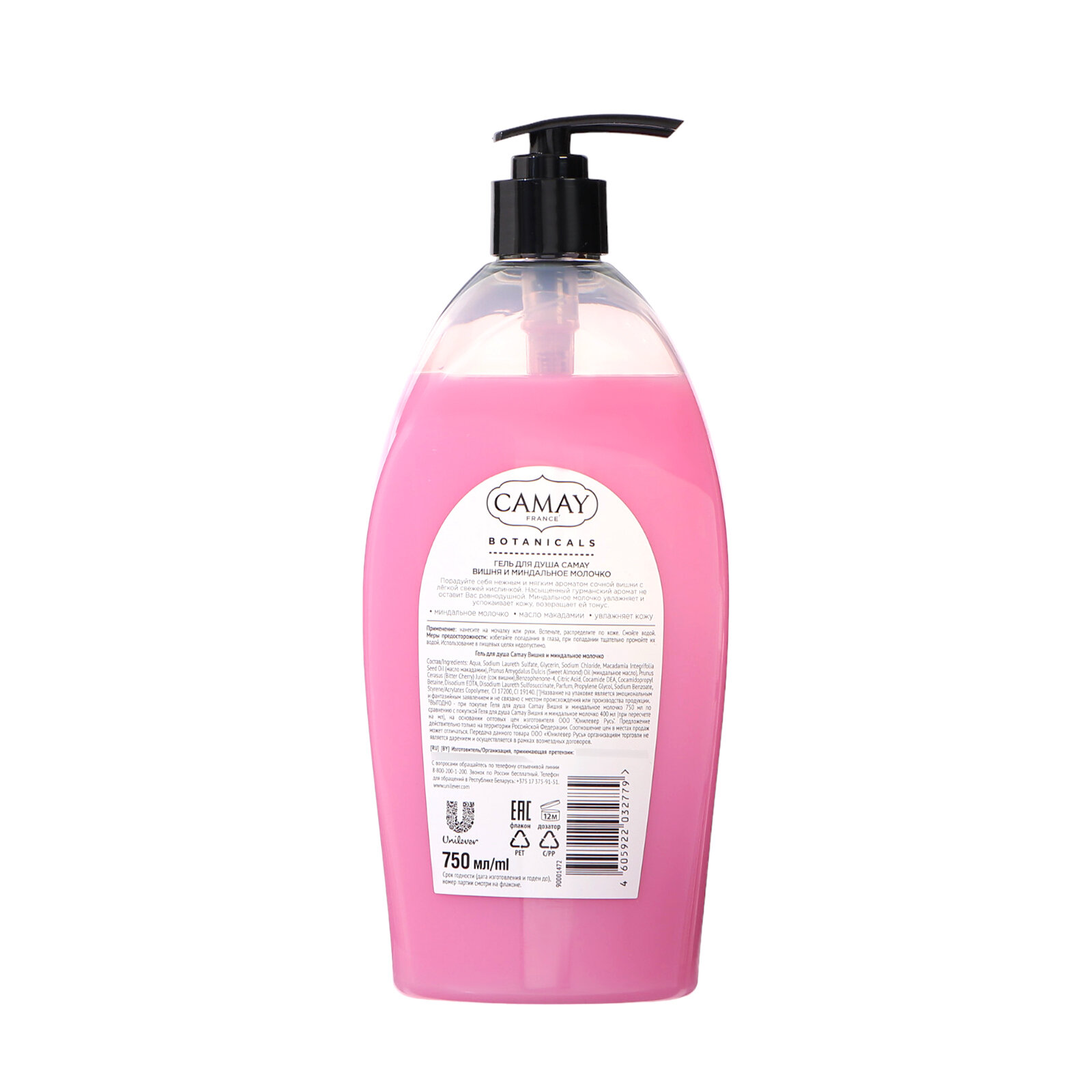 Купить Гель для душа Camay Botanicals Вишня и миндальное молочко, 750 мл