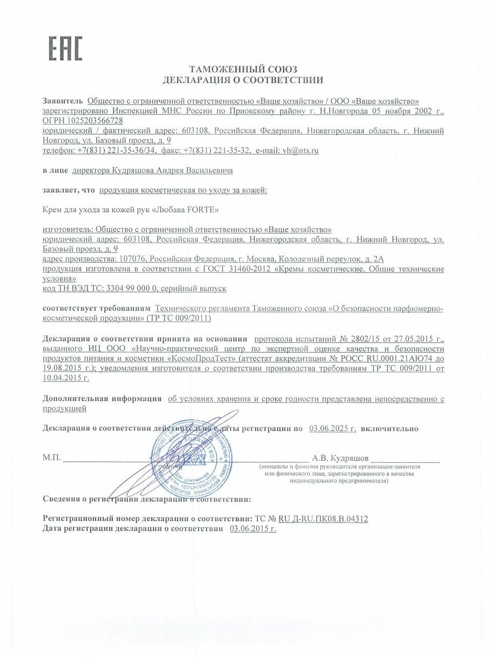 Крем д/рук и тела (75мл) любава МАXFORTE (питательный) туба, с ионами серебра Ваше хозяйство (АН4!)