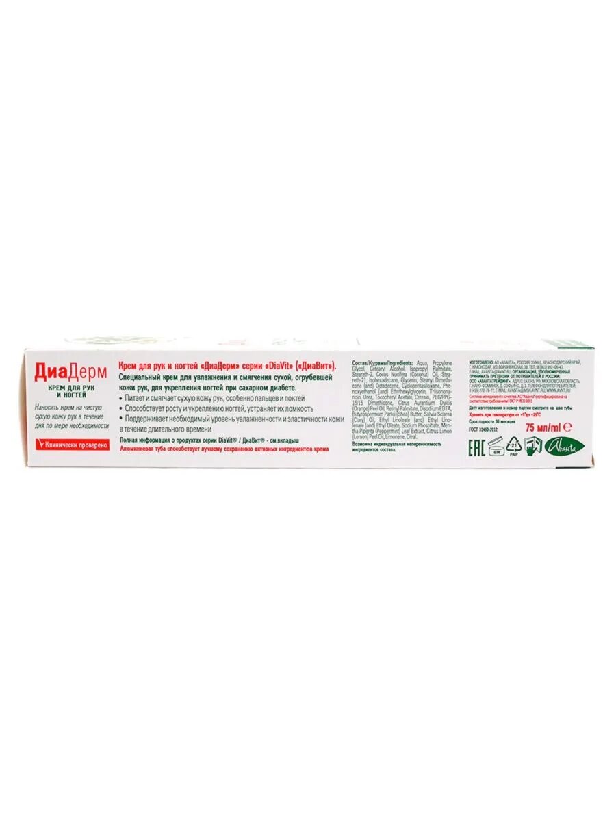 DiaVit Крем для рук и ногтей ДиаДерм для больных сахарным диабетом, 75 мл, 21 шт