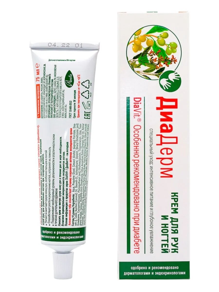 DiaVit Крем для рук и ногтей DiaDerm при диабете туба 75 мл 1 шт