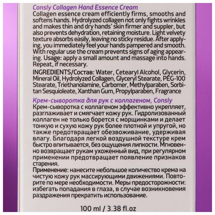 Купить Крем-сыворотка для рук с коллагеном, Collagen Hand Essence Cream, Consly, 100 мл