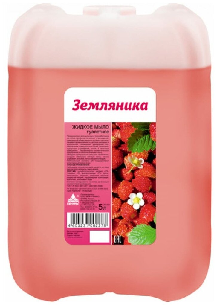 Мыло жидкое туалетное "Земляника", канистра, 5 л