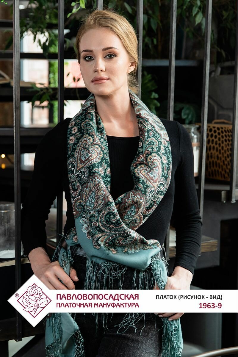 Платок Павловопосадская платочная мануфактура для женщин,148х148 см, зеленый интересное: