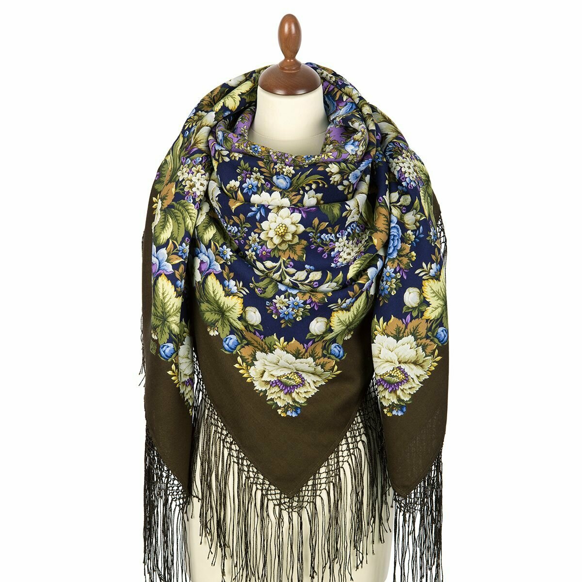 Платок шерстяной Павловопосадские платки 1798 Диво дивное 12, синий, 148 х 148 см