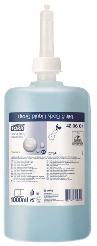 Tork, Швеция Картридж с жидким мылом-гелем для тела и волос одноразовый Tork (S1) Premium 1 л 602955 (1) ()