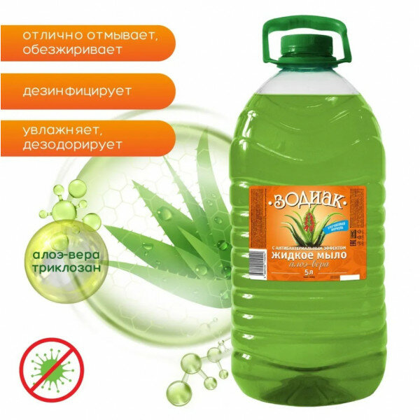 Мыло жидкое зодиак 5л Алоэ-Вера Антибактериальное