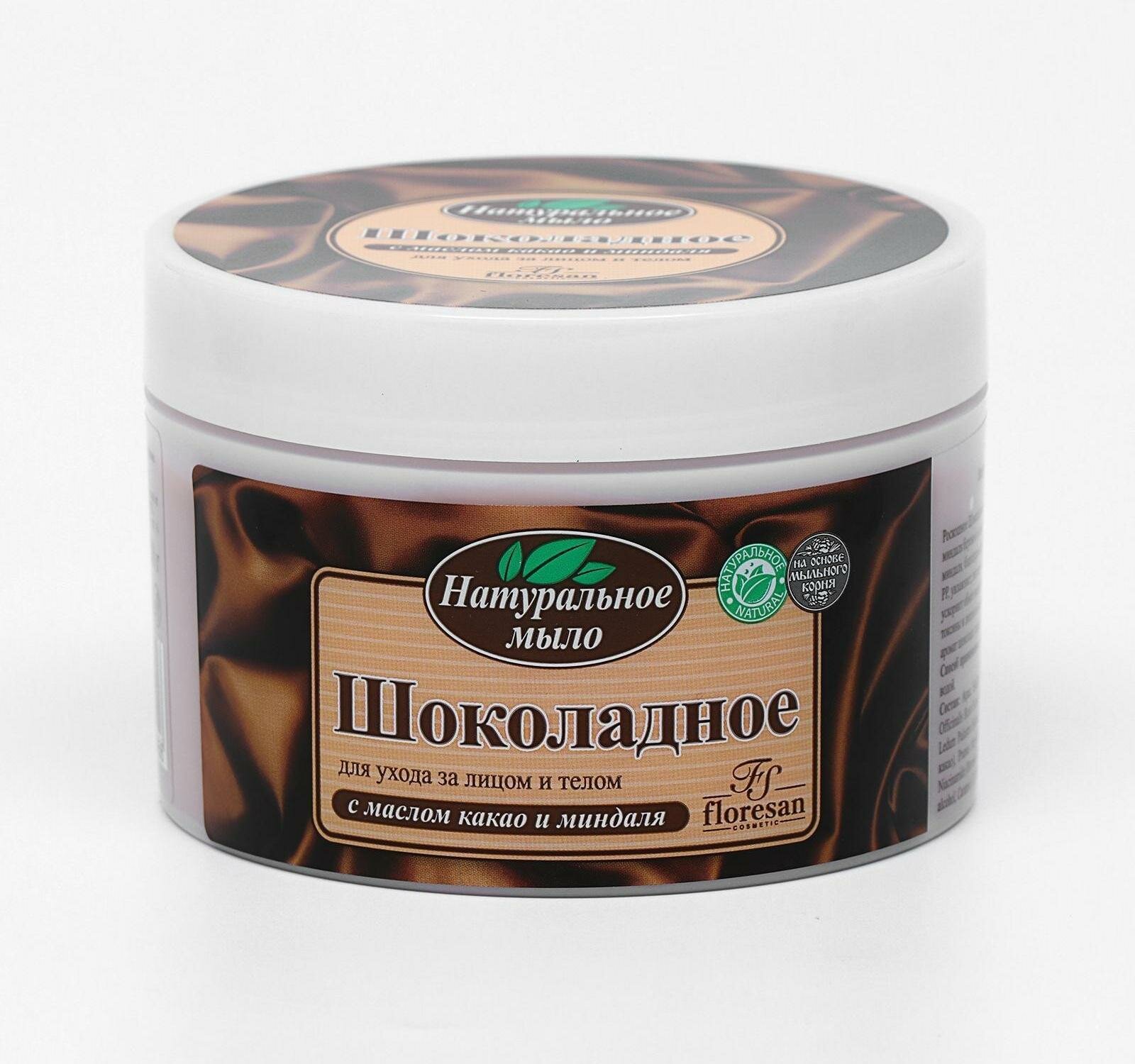 Floresan Мыло натуральное для ухода за лицом и телом "Шоколадное" с маслом какао и миндаля, 450 г