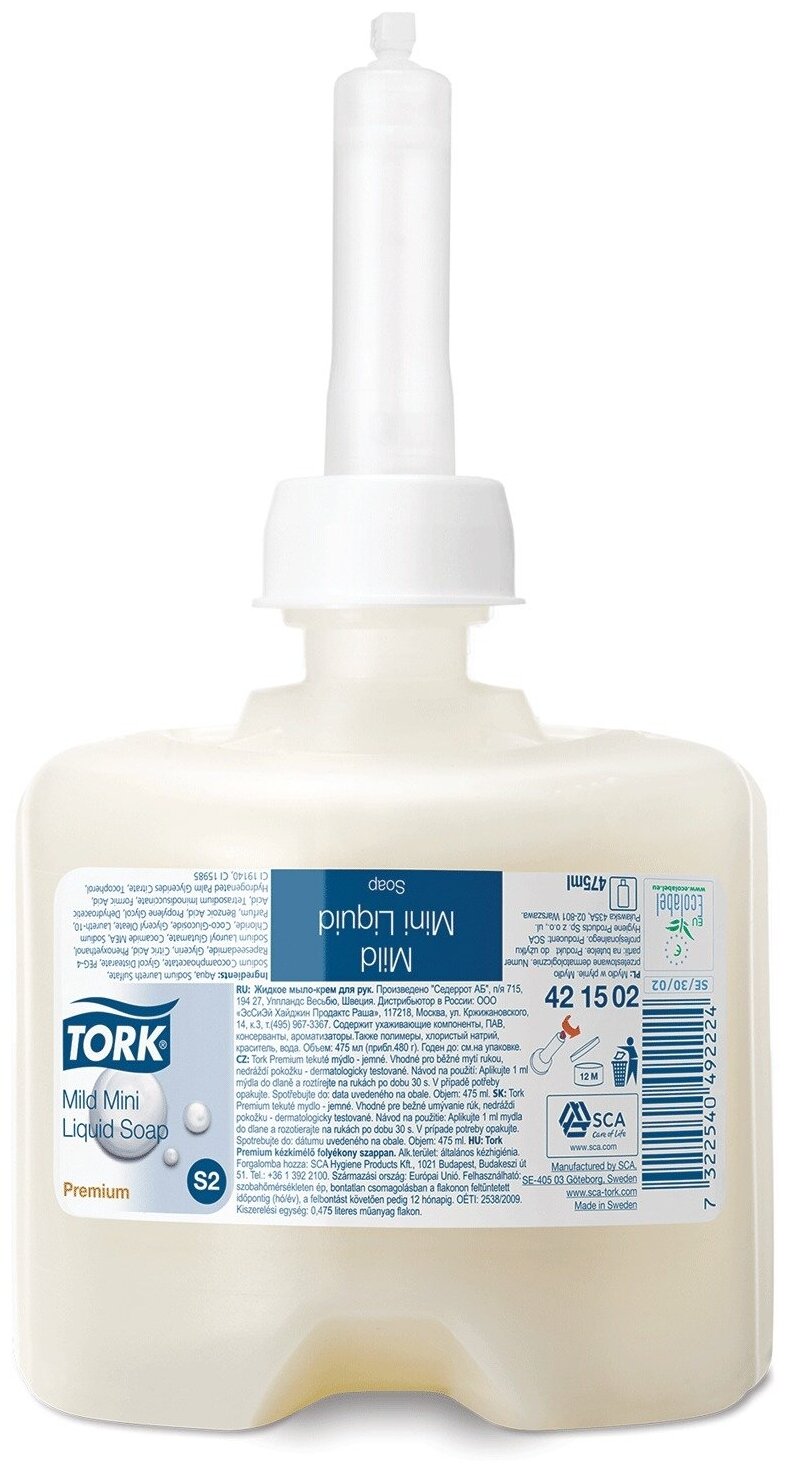 Картридж с жидким мылом одноразовый TORK (Система S2) Premium, 0,475 л, 421502, 420502 интересное: