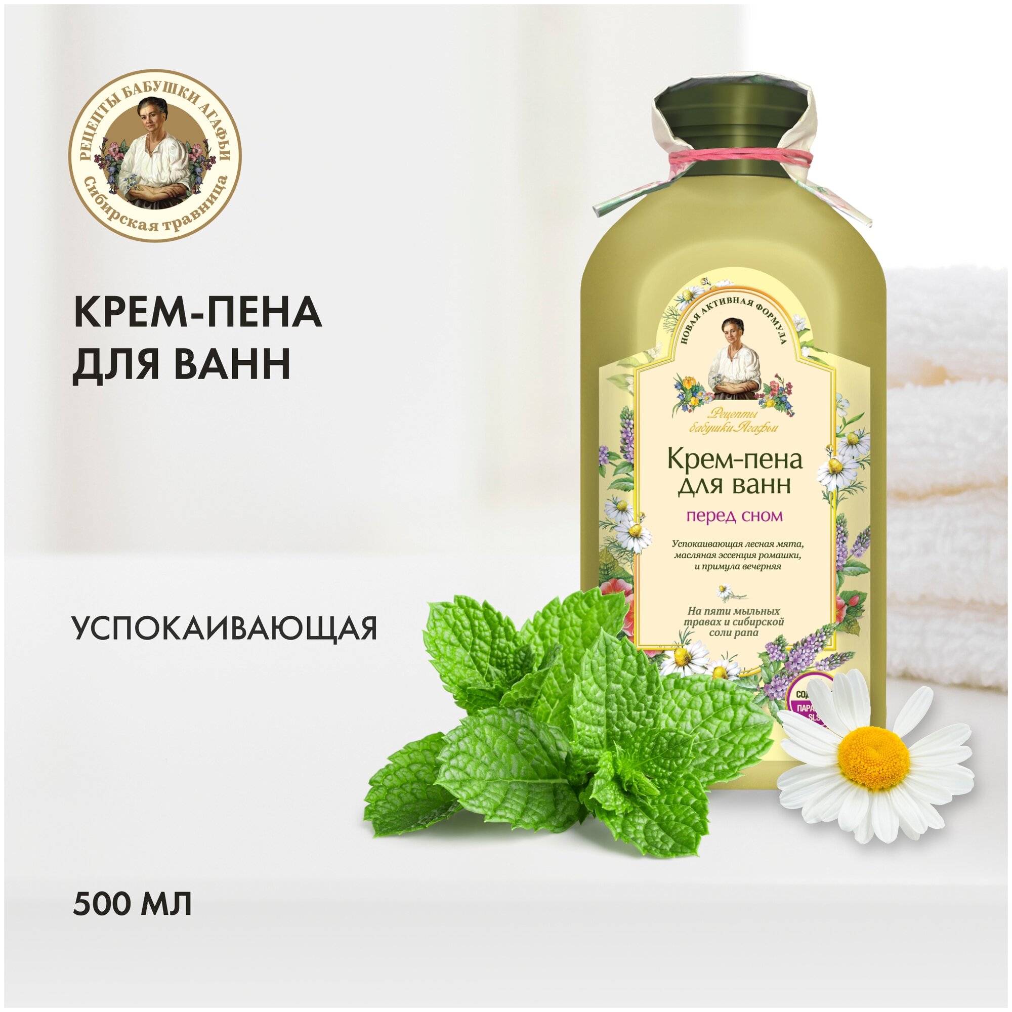 Рецепты Бабушки Агафьи Крем-пена для ванн успокаивающая перед сном с мятой и примулой вечерней 500мл / питание и увлажнение кожи