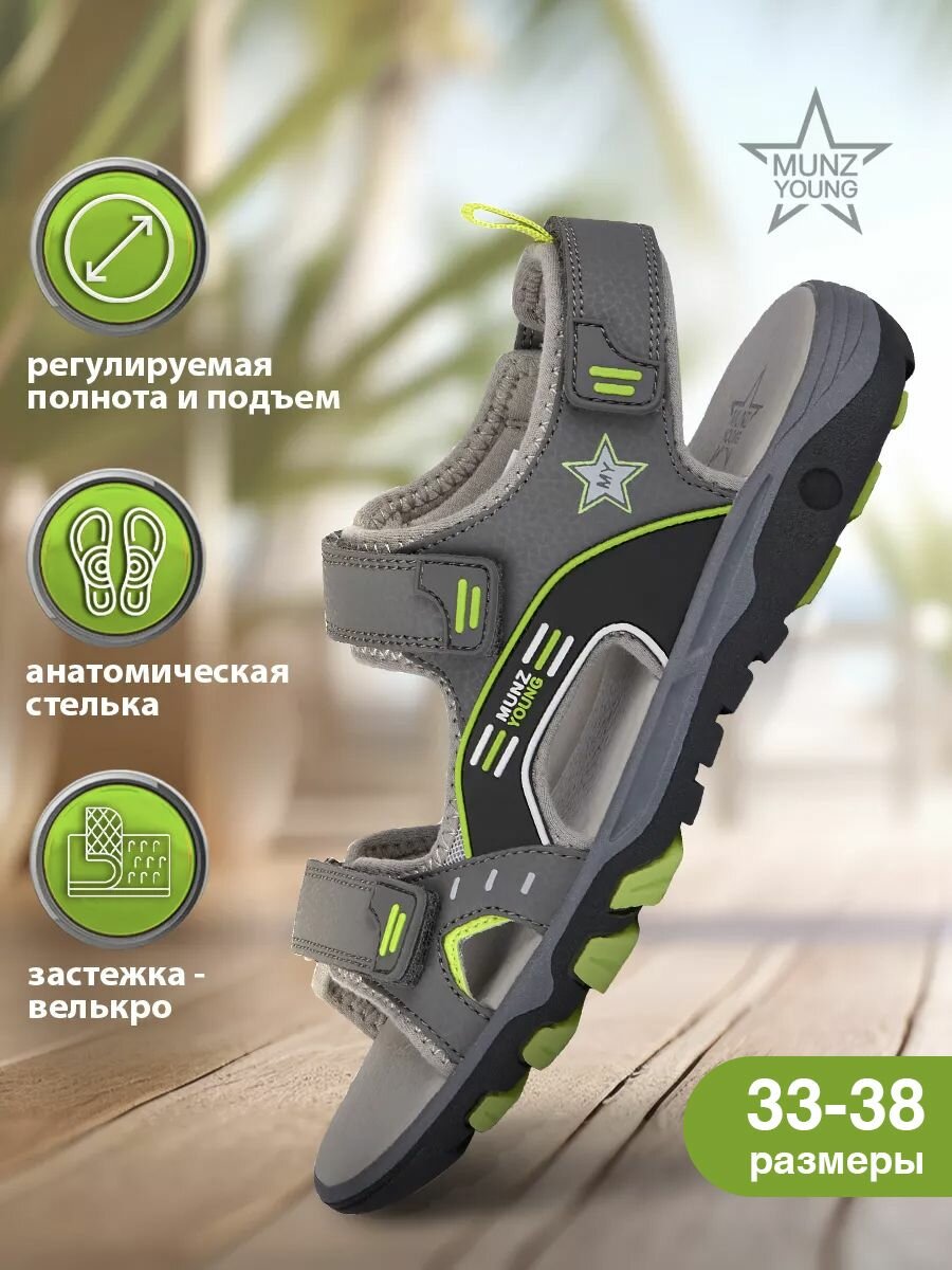 Сандалии MUNZ YOUNG, размер 33, серый, зеленый