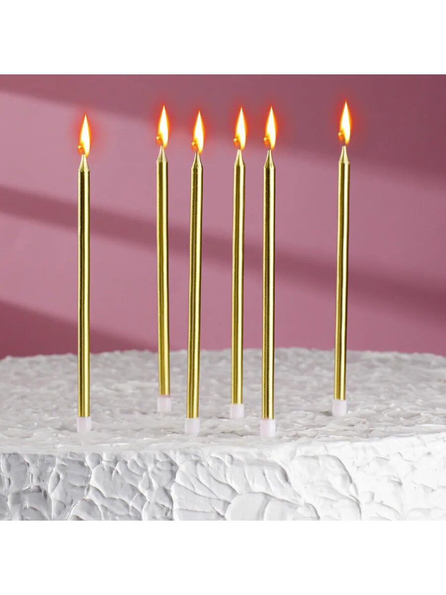 Свечи в торт "Ройс", 6 шт, высокие, 13 см, золотой металлик 4710820