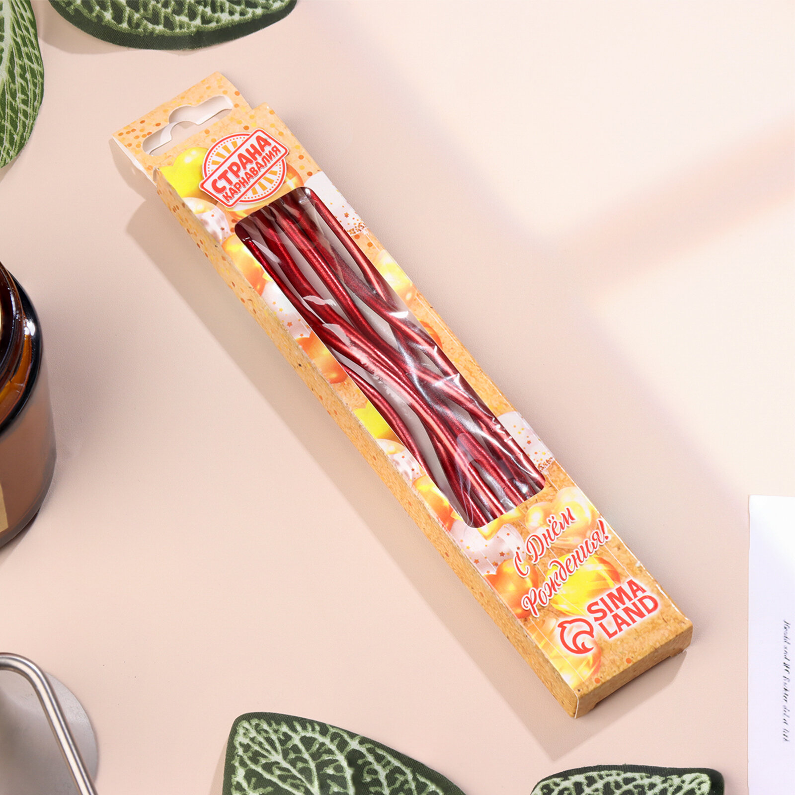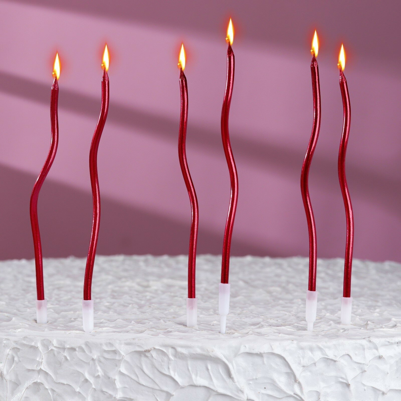 Купить Свечи для торта витые "Серпантин" 6 шт, коктейльные, рубиновые