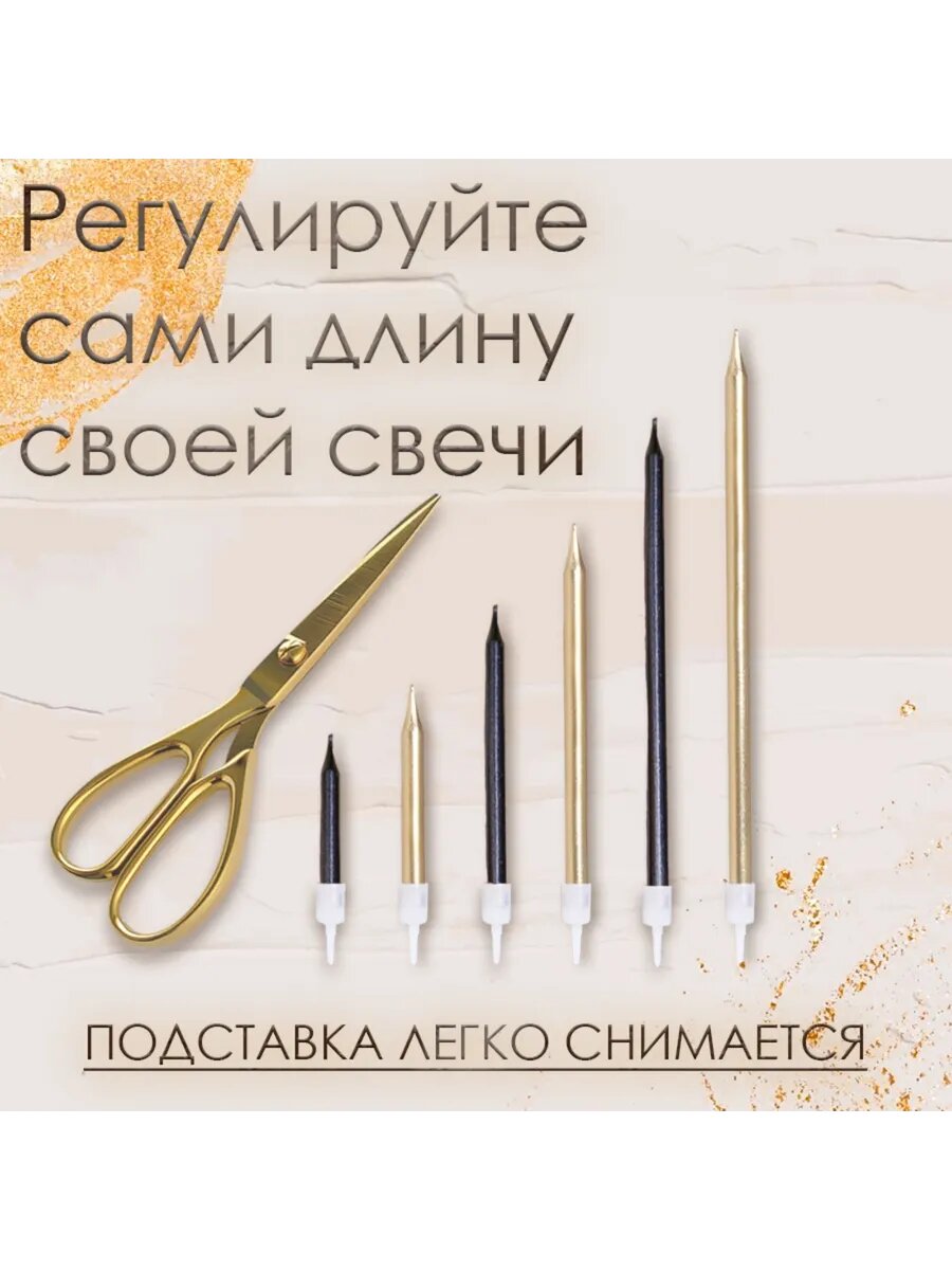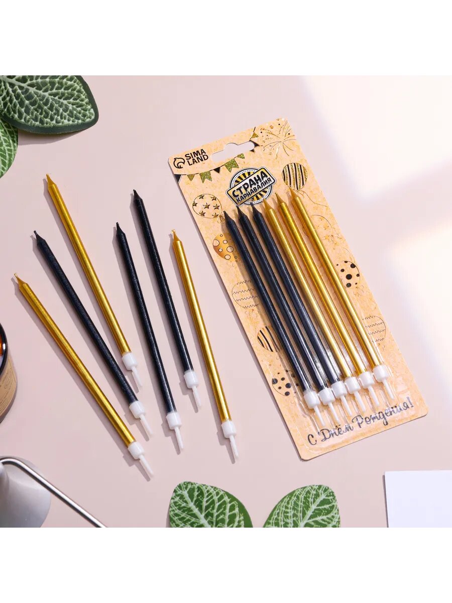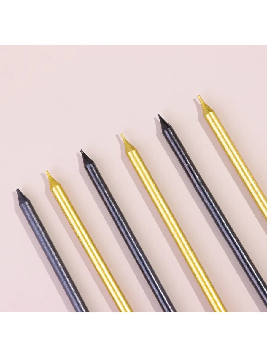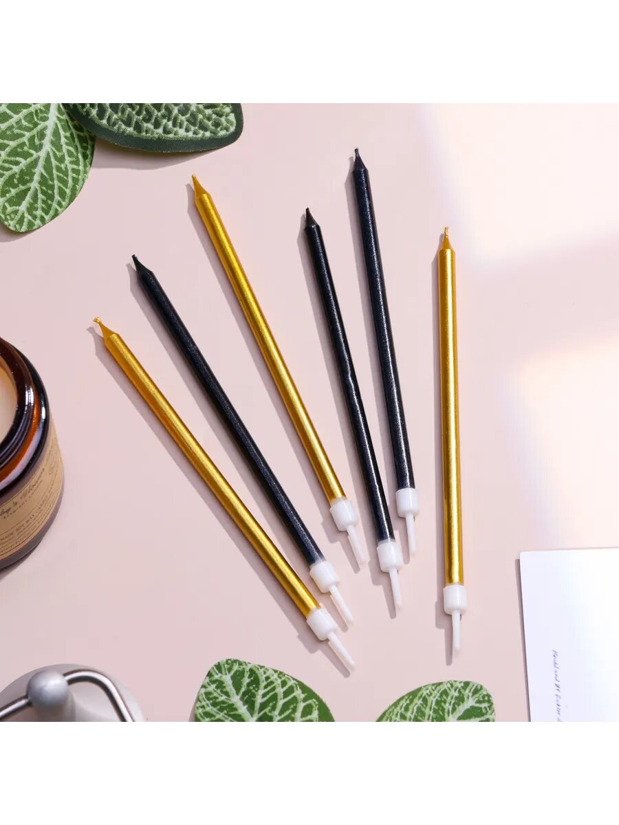 Свечи в торт Ройс, 6 шт, высокие, 13 см, чёрные и золотые