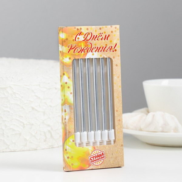 Свечи в торт "Радость", 6 шт, высокие, 13 см, серебристый металлик 4710821