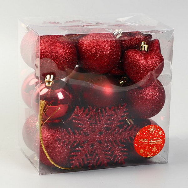 Набор украшений пластик 30 шт "Амур" (16 шаров, 6 сердец, 8 снежинок) красный 4941765