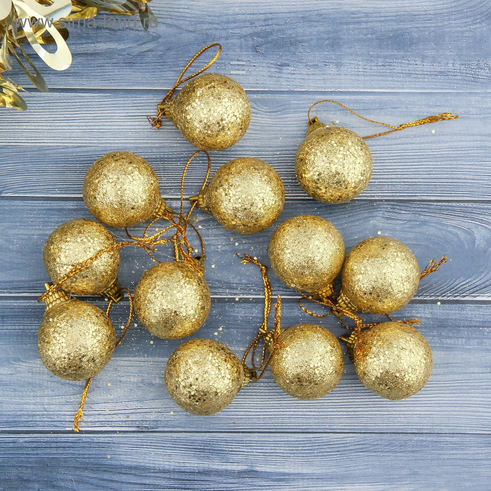 Набор золотых елочных шариков "Шарики" 12шт, пластик, D25мм
