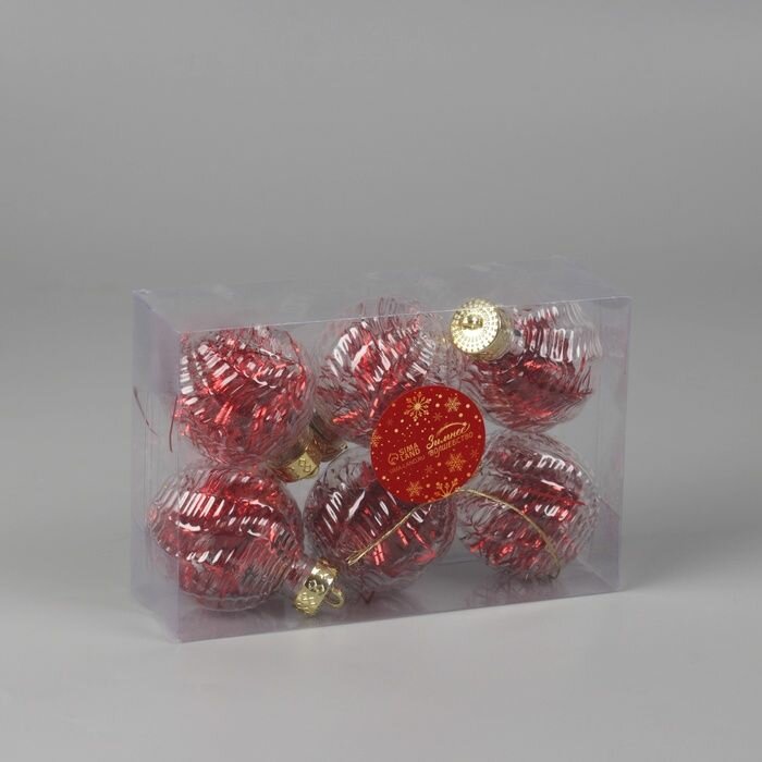 Купить Набор елочных шаров "Бринцзе" прозрачные, с декором внутри, диаметр 6 см, 6 шт, пластик, цвет красный