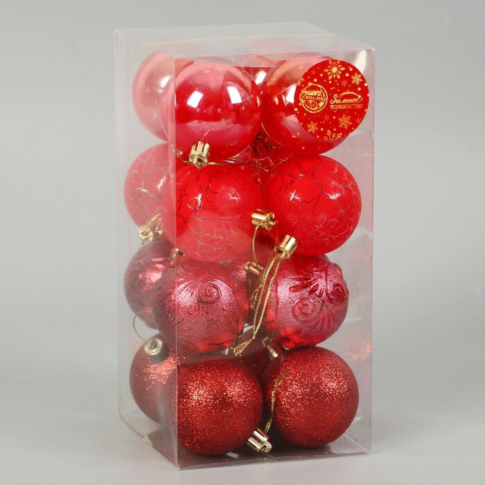 Купить Ёлочные игрушки, шары новогодние , пластик, набор d-6 см, 16 шт "Мелодия" узор треск, красный