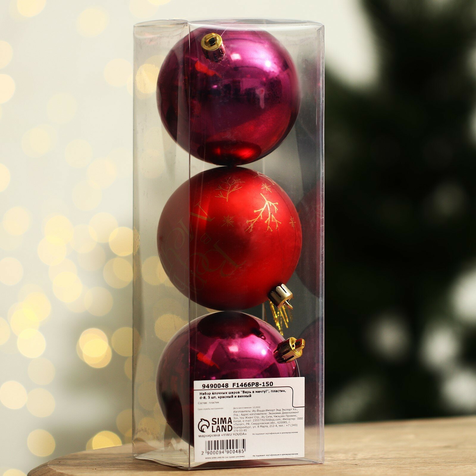 Купить Набор ёлочных шаров «Верь в мечту!», пластик, d-8,3 шт, красный и винный