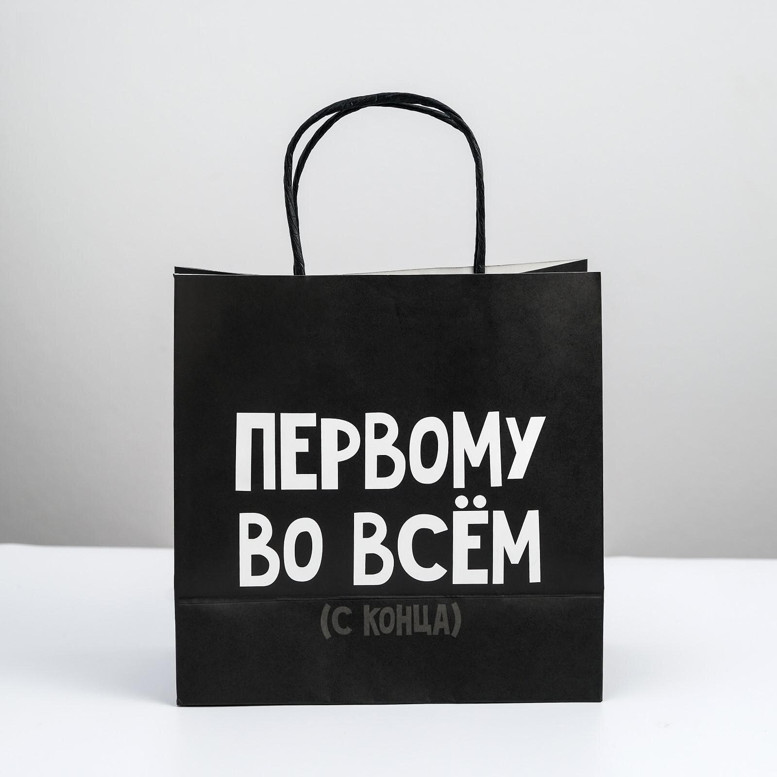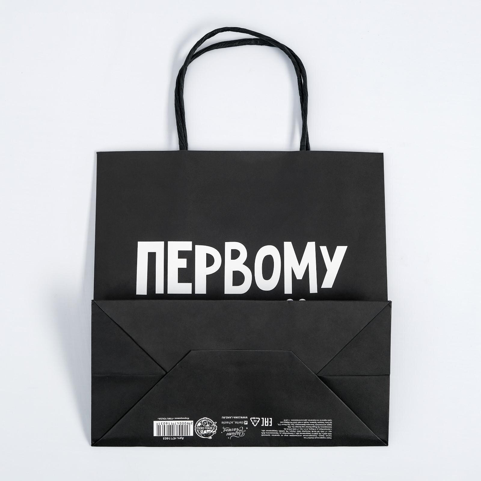 Купить Пакет подарочный с приколом «Первому во всём», 22 × 22 × 11 см, крафтовый