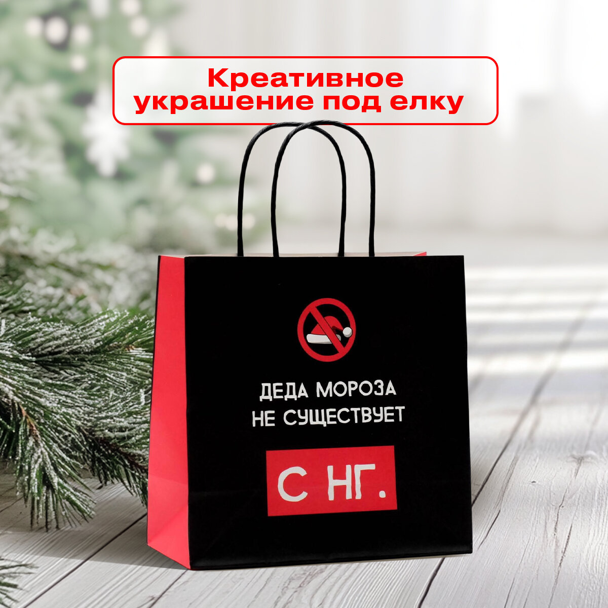 Купить Подарочный пакет «Деда мороза не существует», 22 х 22 х 11 см, черный, для упаковки подарка на Новый год