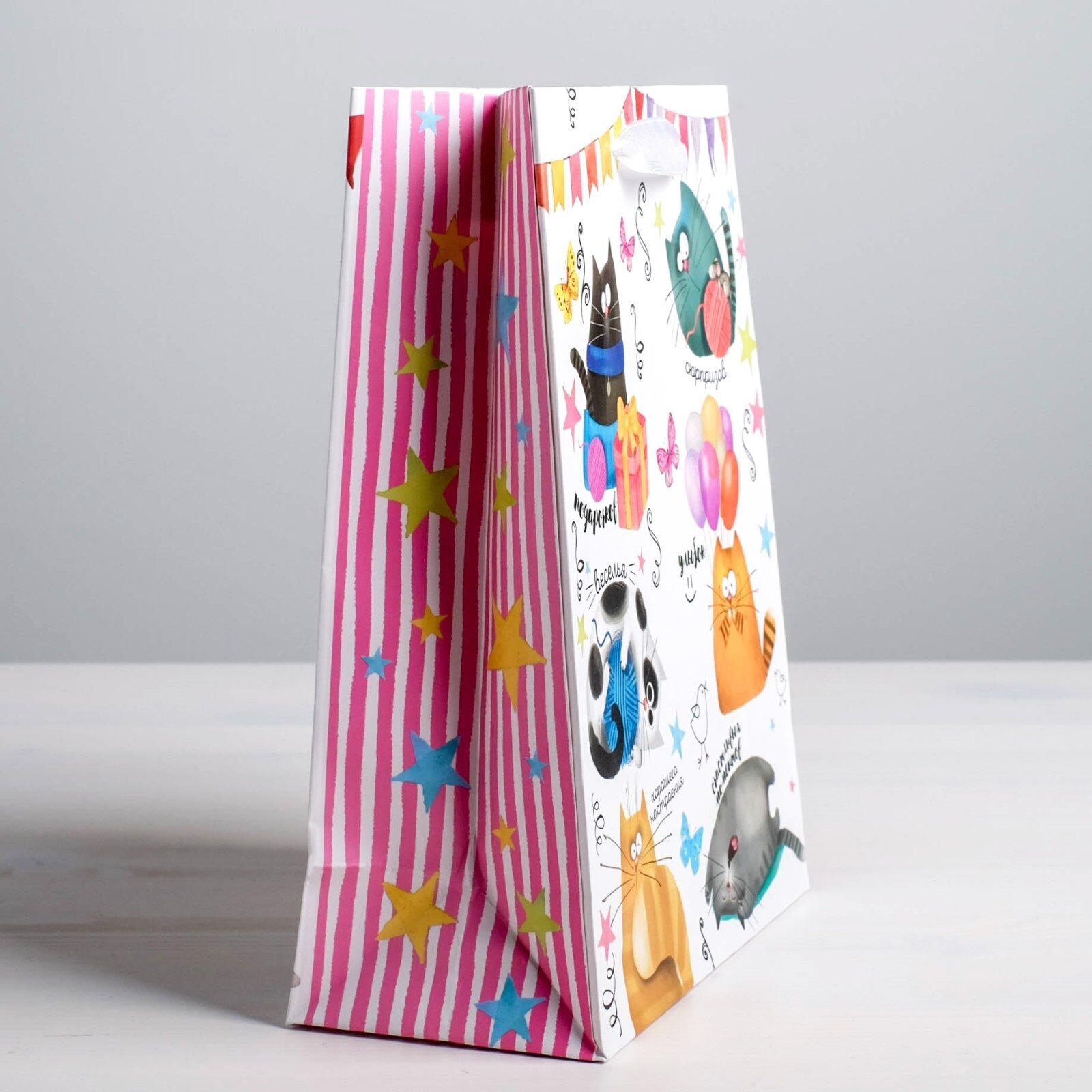 Купить Пакет подарочный ламинированный «Забавные коты», 23 × 27 × 8 см, белый, для упаковки подарка