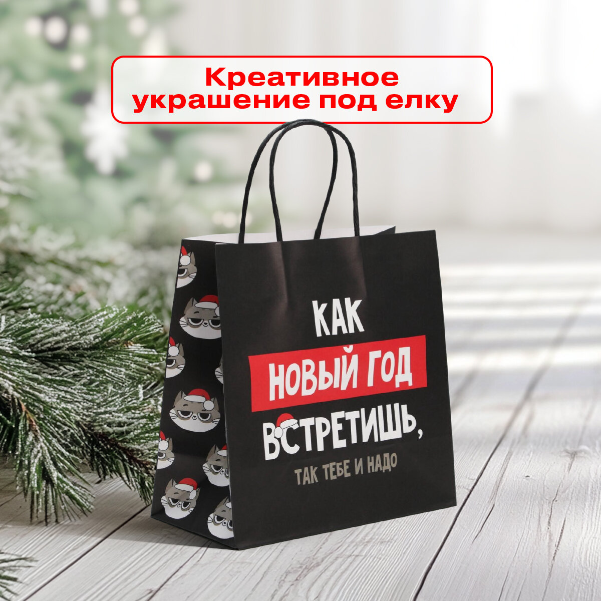 Купить Подарочный пакет «Так тебе и надо», 22 х 22 х 11 см, черный, крафт, для упаковки подарка на Новый год