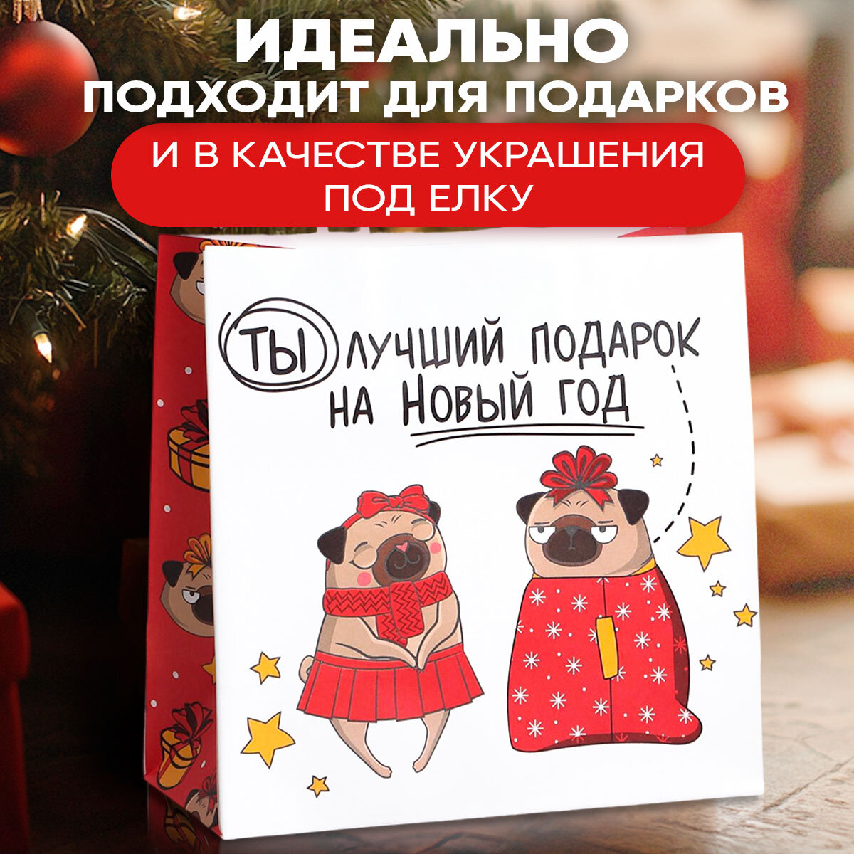Купить Подарочный пакет «Ты - лучший подарок», 22 х 22 х 11 см, крафт, для упаковки подарка на Новый год