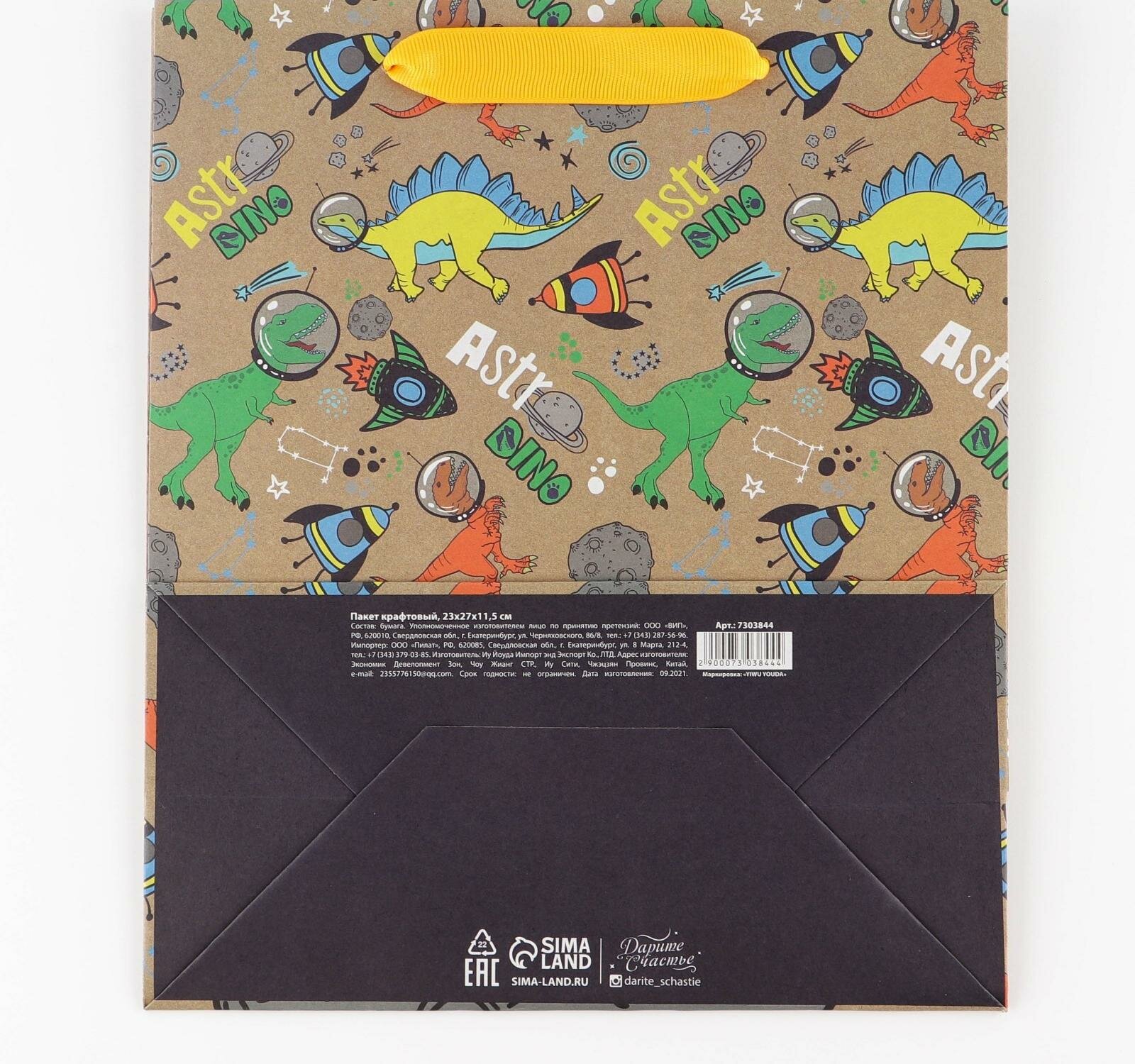 СохранитьПакет подарочный крафтовый вертикальный, упаковка, "Динозавр: Dino", ML 23 x 27 x 11.5 см интересное: