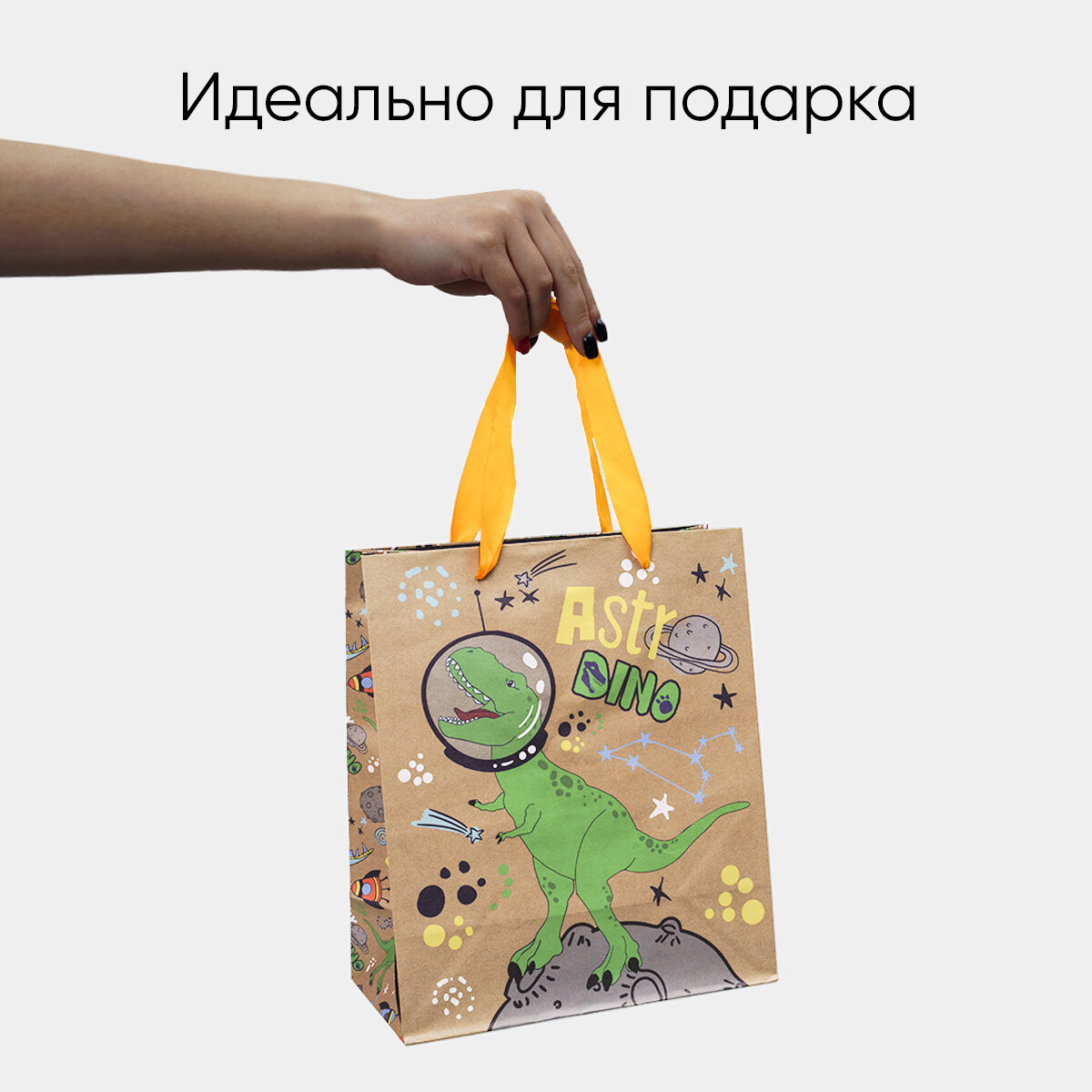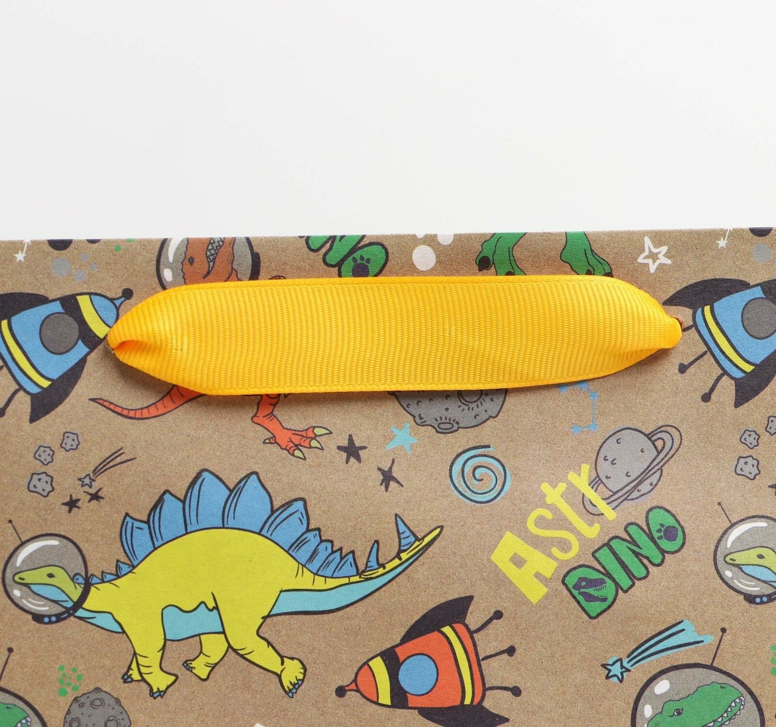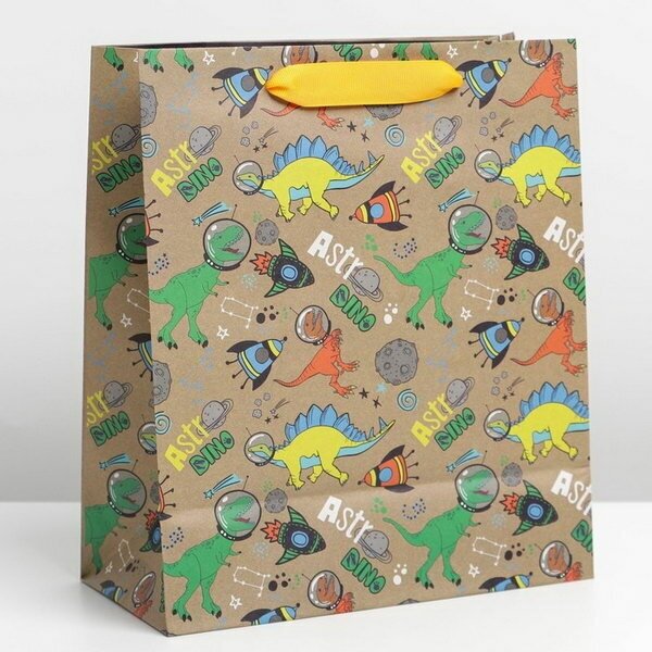 Купить Пакет подарочный крафтовый вертикальный, упаковка, "Динозавр: Dino", ML 23 x 27 x 11.5 см