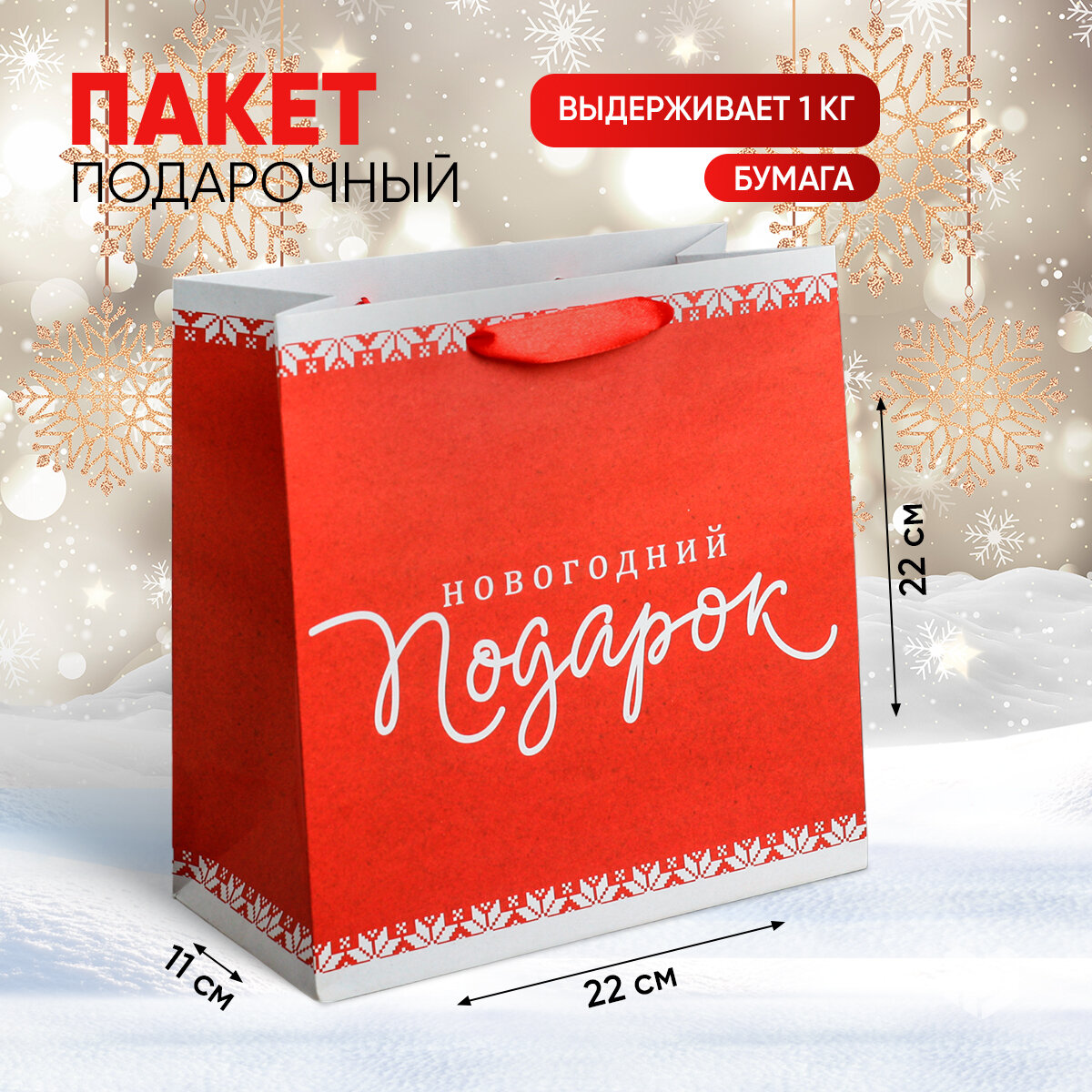 СохранитьПакет подарочный новогодний крафтовый квадратный "Новогодний подарок", 22 x 22 x 11см интересное: