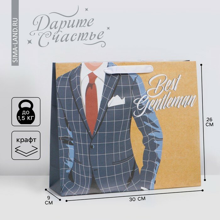 Купить Пакет крафтовый вертикальный "Best gentleman", M 30 х 26 х 9 см