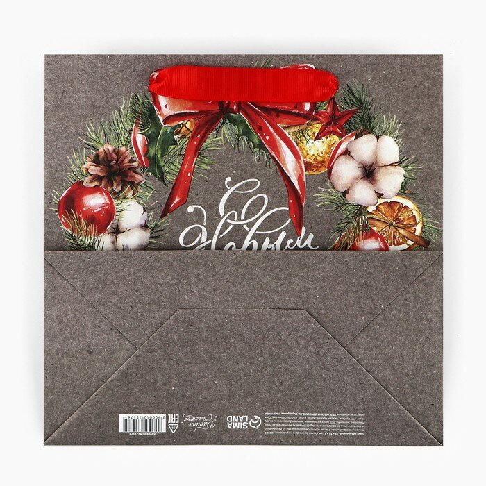 Купить Пакет подарочный новогодний крафтовый квадратный «С Новым Годом», 22 х 22 х 11см
