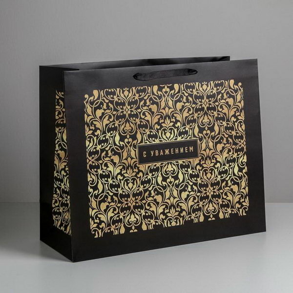 Пакет подарочный ламинированный, упаковка, "С Уважением", XL 49 x 40 x 19 см интересное: