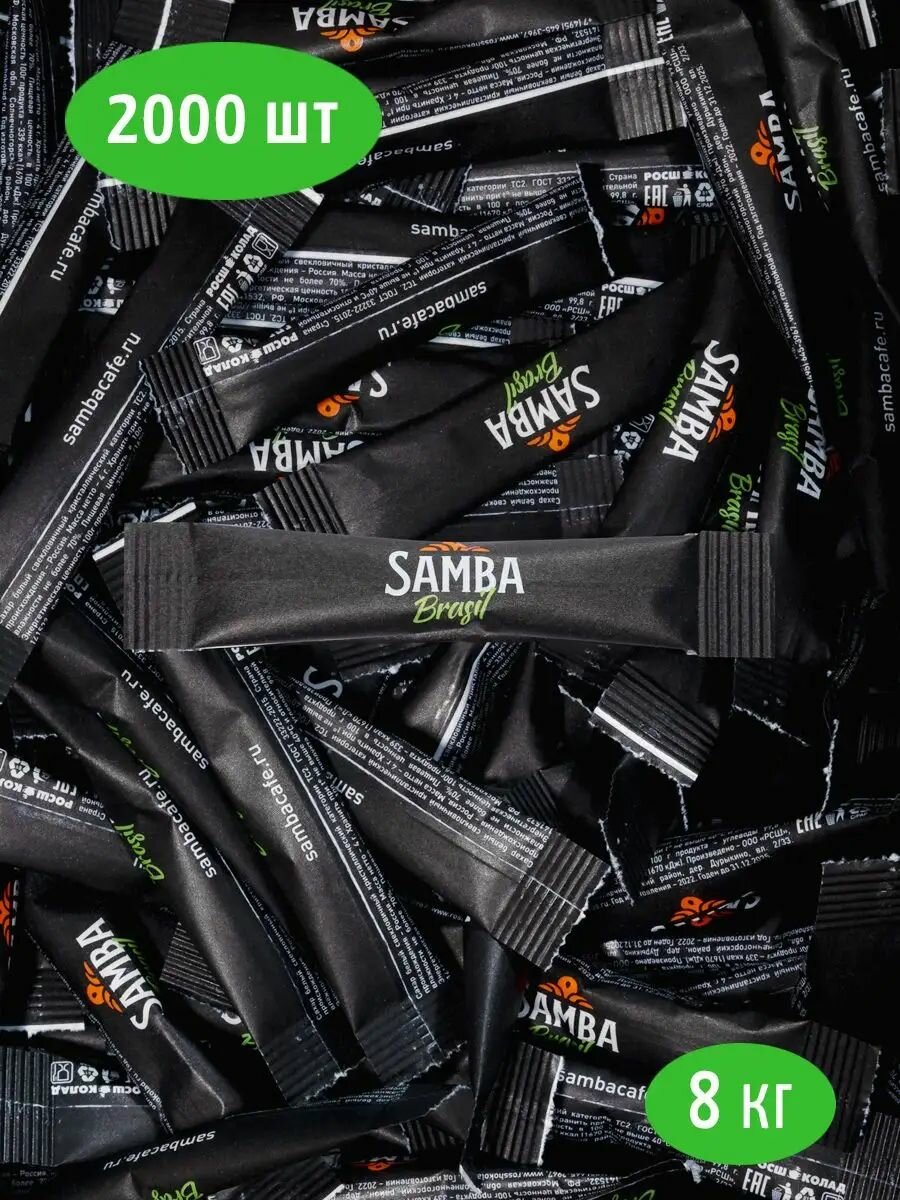 Сахар порционный в стиках Samba Cafe Brasil для кофе и чая, 8 кг, набор/коробка/упаковка из 2000 пакетиков одноразовых по 4 гр (чайная ложка) интересное: