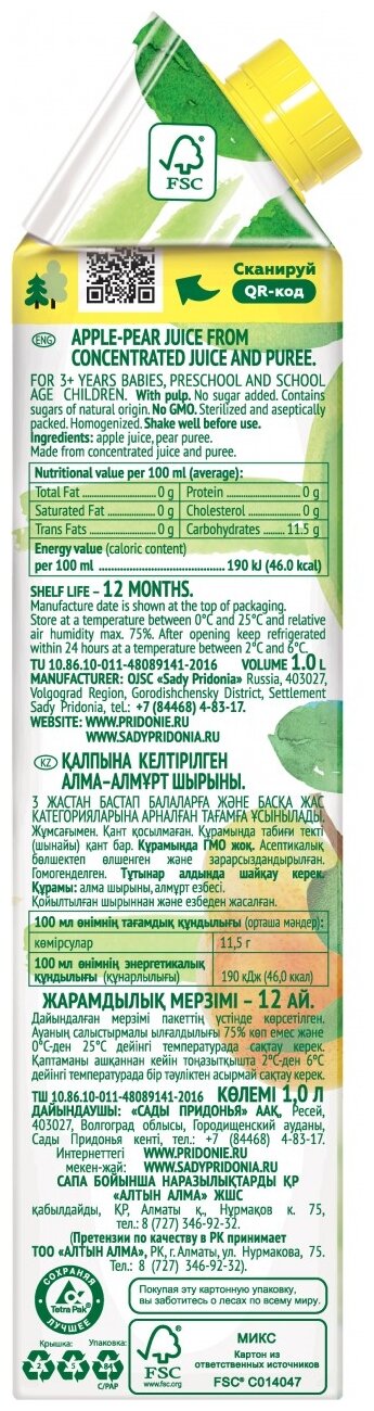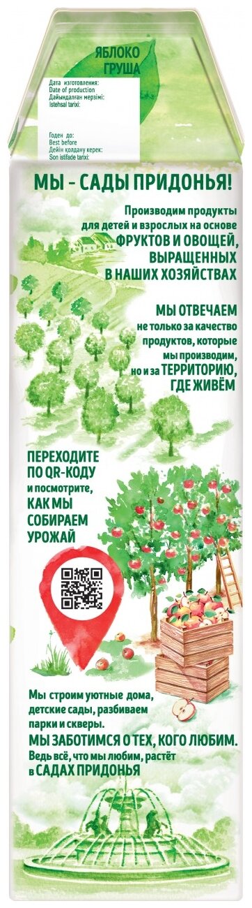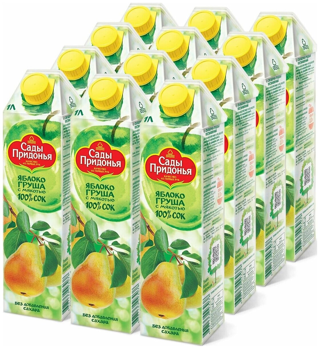 Сок Сады Придонья "Яблоко-Груша", с мякотью, стерилизованный, 1л, 12шт интересное: