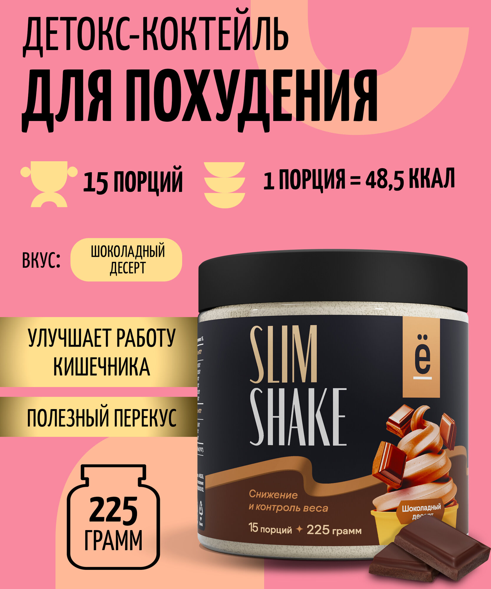Купить Коктейль ё|батон SLIM SHAKE, для похудения, Шоколадный десерт, 225 г