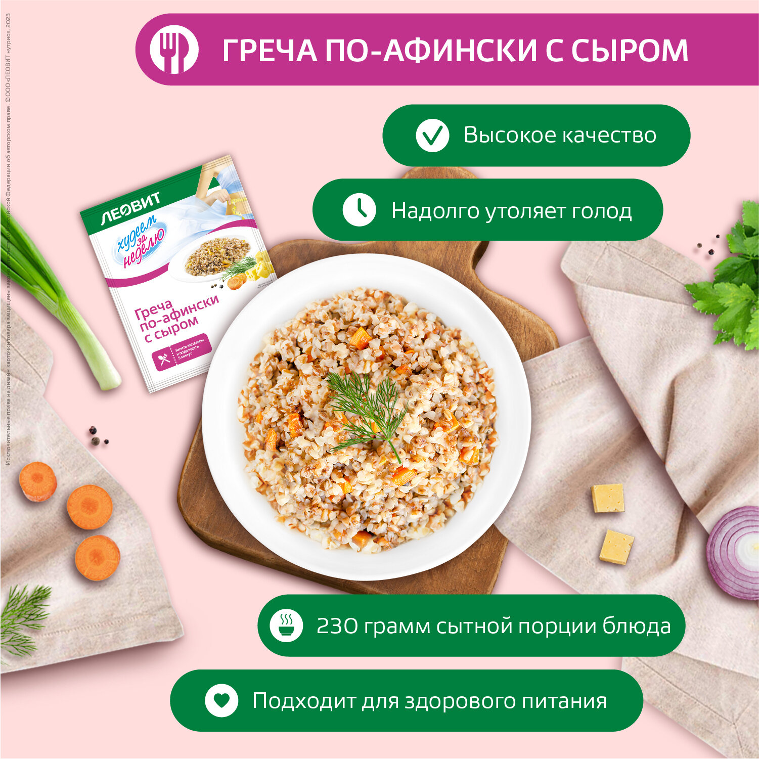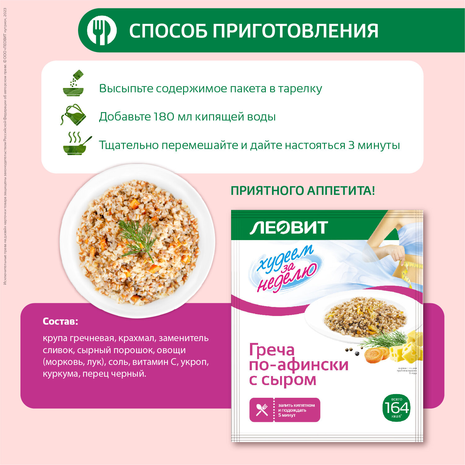 Гречка по-афински с сыром диетическая 12 шт по 50 гр Худеем за неделю от ЛЕОВИТ каша быстрого приготовления без варки интересное: