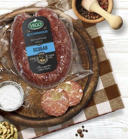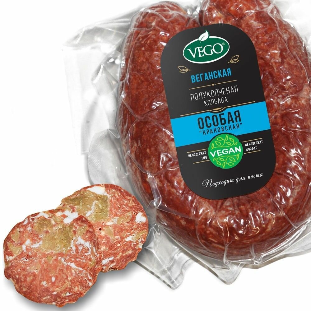 Колбаса полукопченая постная "Краковская веганская" растительный продукт, 450 г VEGO интересное: